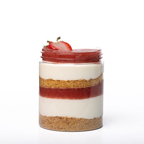 Creamy vanilla cheesecake layered with real strawberry preserve and citrus. Sweet, fresh, and unapologetically Thic.