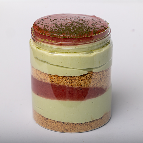 Delicate layers of vanilla and earthy matcha cheesecake meet our OG strawberry preserve…