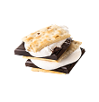 Layers of Marshmallow, white chocolate & Cocoa cheesecakes with graham crumbs, a drizzle of chocolate ganache and toasted marshmallow